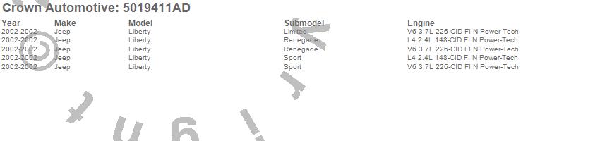 Crown Automotive Throttle Position Sensor 5019411AD Features: