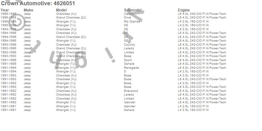 Crown Automotive is the premier manufacturer and distributor of quality replacement parts for Jeep® CJ™, Wrangler™, Cherokee™, Grand Cherokee™, Liberty™, and Commander™."From humble beginnings in 1963 in a small Boston storefront, Crown Automotive has consistently maintained its commitment to offering only quality parts and exceptional service. Today, with warehouses in Massachusetts, Georgia, Nevada, Spain, and the Czech Republic, totaling over 160,000 square feet, Crown Automotive continues to be the leader in quality replacement parts for Jeep® vehicles. With over 8,000 different parts in stock for Jeep® vehicles from 1942 on up, Crown has the largest stock of replacement parts for Jeep® vehicles, including factory-discontinued parts. In fact, many of the older Jeeps are still on (and off) the road thanks to Crown parts. The Crown line consists of axle, body, brake, clutch, cooling, driveline, electrical, engine, exhaust, fuel, steering, suspension, transmission and transfer case components. Crown Automotive also offers an exclusive line of component kits and accessory products. Because we know that Jeeps are driven harder than most other vehicles, we emphasize offering only quality parts. In fact, we test parts on Jeeps before distributing them to our dealers to insure that they meet our standards for quality. Crown also supports its entire line with a 12 month/12,000 mile warranty to insure our dealers and their customers of our commitment to offering quality parts. We know from experience that Jeep® owners would rather pay a little more for a good quality part that's backed by a strong guarantee. But we know that price is important as well. So, not only will you find Crown parts to be of exceptional quality, but you'll find them at a great price too.