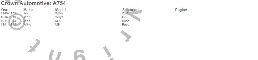 Crown Automotive is the premier manufacturer and distributor of quality replacement parts for Jeep® CJ™, Wrangler™, Cherokee™, Grand Cherokee™, Liberty™, and Commander™."From humble beginnings in 1963 in a small Boston storefront, Crown Automotive has consistently maintained its commitment to offering only quality parts and exceptional service. Today, with warehouses in Massachusetts, Georgia, Nevada, Spain, and the Czech Republic, totaling over 160,000 square feet, Crown Automotive continues to be the leader in quality replacement parts for Jeep® vehicles. With over 8,000 different parts in stock for Jeep® vehicles from 1942 on up, Crown has the largest stock of replacement parts for Jeep® vehicles, including factory-discontinued parts. In fact, many of the older Jeeps are still on (and off) the road thanks to Crown parts. The Crown line consists of axle, body, brake, clutch, cooling, driveline, electrical, engine, exhaust, fuel, steering, suspension, transmission and transfer case components. Crown Automotive also offers an exclusive line of component kits and accessory products. Because we know that Jeeps are driven harder than most other vehicles, we emphasize offering only quality parts. In fact, we test parts on Jeeps before distributing them to our dealers to insure that they meet our standards for quality. Crown also supports its entire line with a 12 month/12,000 mile warranty to insure our dealers and their customers of our commitment to offering quality parts. We know from experience that Jeep® owners would rather pay a little more for a good quality part that's backed by a strong guarantee. But we know that price is important as well. So, not only will you find Crown parts to be of exceptional quality, but you'll find them at a great price too.