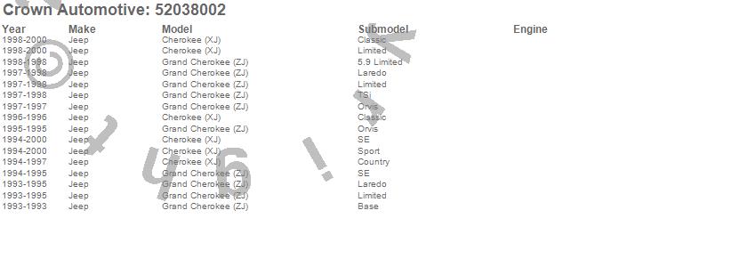 Crown Automotive is the premier manufacturer and distributor of quality replacement parts for Jeep® CJ™, Wrangler™, Cherokee™, Grand Cherokee™, Liberty™, and Commander™."From humble beginnings in 1963 in a small Boston storefront, Crown Automotive has consistently maintained its commitment to offering only quality parts and exceptional service. Today, with warehouses in Massachusetts, Georgia, Nevada, Spain, and the Czech Republic, totaling over 160,000 square feet, Crown Automotive continues to be the leader in quality replacement parts for Jeep® vehicles. With over 8,000 different parts in stock for Jeep® vehicles from 1942 on up, Crown has the largest stock of replacement parts for Jeep® vehicles, including factory-discontinued parts. In fact, many of the older Jeeps are still on (and off) the road thanks to Crown parts. The Crown line consists of axle, body, brake, clutch, cooling, driveline, electrical, engine, exhaust, fuel, steering, suspension, transmission and transfer case components. Crown Automotive also offers an exclusive line of component kits and accessory products. Because we know that Jeeps are driven harder than most other vehicles, we emphasize offering only quality parts. In fact, we test parts on Jeeps before distributing them to our dealers to insure that they meet our standards for quality. Crown also supports its entire line with a 12 month/12,000 mile warranty to insure our dealers and their customers of our commitment to offering quality parts. We know from experience that Jeep® owners would rather pay a little more for a good quality part that's backed by a strong guarantee. But we know that price is important as well. So, not only will you find Crown parts to be of exceptional quality, but you'll find them at a great price too.