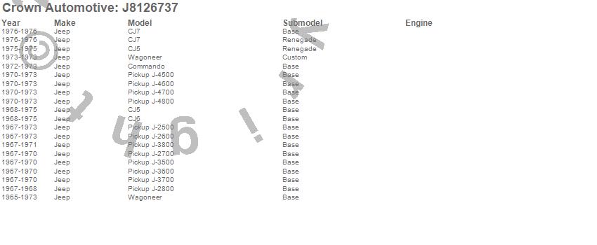 CJ5, CJ6, CJ7, Commando, J-2500, J-2600, J-2700, J-2800, J-3500, J-3600, J-3700, J-3800, J-4500, J-4600, J-4700, J-4800, Jeepster, Wagoneer, Jeep, 1976 more…