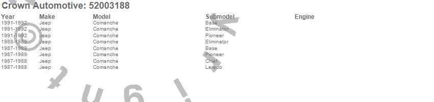 Crown Automotive is the premier manufacturer and distributor of quality replacement parts for Jeep® CJ™, Wrangler™, Cherokee™, Grand Cherokee™, Liberty™, and Commander™."From humble beginnings in 1963 in a small Boston storefront, Crown Automotive has consistently maintained its commitment to offering only quality parts and exceptional service. Today, with warehouses in Massachusetts, Georgia, Nevada, Spain, and the Czech Republic, totaling over 160,000 square feet, Crown Automotive continues to be the leader in quality replacement parts for Jeep® vehicles. With over 8,000 different parts in stock for Jeep® vehicles from 1942 on up, Crown has the largest stock of replacement parts for Jeep® vehicles, including factory-discontinued parts. In fact, many of the older Jeeps are still on (and off) the road thanks to Crown parts. The Crown line consists of axle, body, brake, clutch, cooling, driveline, electrical, engine, exhaust, fuel, steering, suspension, transmission and transfer case components. Crown Automotive also offers an exclusive line of component kits and accessory products. Because we know that Jeeps are driven harder than most other vehicles, we emphasize offering only quality parts. In fact, we test parts on Jeeps before distributing them to our dealers to insure that they meet our standards for quality. Crown also supports its entire line with a 12 month/12,000 mile warranty to insure our dealers and their customers of our commitment to offering quality parts. We know from experience that Jeep® owners would rather pay a little more for a good quality part that's backed by a strong guarantee. But we know that price is important as well. So, not only will you find Crown parts to be of exceptional quality, but you'll find them at a great price too.