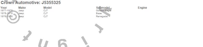 Crown Automotive is the premier manufacturer and distributor of quality replacement parts for Jeep® CJ™, Wrangler™, Cherokee™, Grand Cherokee™, Liberty™, and Commander™."From humble beginnings in 1963 in a small Boston storefront, Crown Automotive has consistently maintained its commitment to offering only quality parts and exceptional service. Today, with warehouses in Massachusetts, Georgia, Nevada, Spain, and the Czech Republic, totaling over 160,000 square feet, Crown Automotive continues to be the leader in quality replacement parts for Jeep® vehicles. With over 8,000 different parts in stock for Jeep® vehicles from 1942 on up, Crown has the largest stock of replacement parts for Jeep® vehicles, including factory-discontinued parts. In fact, many of the older Jeeps are still on (and off) the road thanks to Crown parts. The Crown line consists of axle, body, brake, clutch, cooling, driveline, electrical, engine, exhaust, fuel, steering, suspension, transmission and transfer case components. Crown Automotive also offers an exclusive line of component kits and accessory products. Because we know that Jeeps are driven harder than most other vehicles, we emphasize offering only quality parts. In fact, we test parts on Jeeps before distributing them to our dealers to insure that they meet our standards for quality. Crown also supports its entire line with a 12 month/12,000 mile warranty to insure our dealers and their customers of our commitment to offering quality parts. We know from experience that Jeep® owners would rather pay a little more for a good quality part that's backed by a strong guarantee. But we know that price is important as well. So, not only will you find Crown parts to be of exceptional quality, but you'll find them at a great price too.