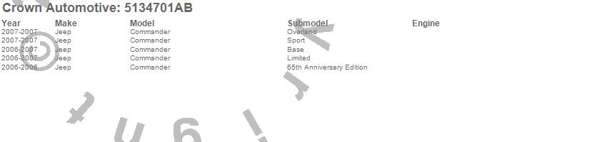 Crown Automotive is the premier manufacturer and distributor of quality replacement parts for Jeep® CJ™, Wrangler™, Cherokee™, Grand Cherokee™, Liberty™, and Commander™."From humble beginnings in 1963 in a small Boston storefront, Crown Automotive has consistently maintained its commitment to offering only quality parts and exceptional service. Today, with warehouses in Massachusetts, Georgia, Nevada, Spain, and the Czech Republic, totaling over 160,000 square feet, Crown Automotive continues to be the leader in quality replacement parts for Jeep® vehicles. With over 8,000 different parts in stock for Jeep® vehicles from 1942 on up, Crown has the largest stock of replacement parts for Jeep® vehicles, including factory-discontinued parts. In fact, many of the older Jeeps are still on (and off) the road thanks to Crown parts. The Crown line consists of axle, body, brake, clutch, cooling, driveline, electrical, engine, exhaust, fuel, steering, suspension, transmission and transfer case components. Crown Automotive also offers an exclusive line of component kits and accessory products. Because we know that Jeeps are driven harder than most other vehicles, we emphasize offering only quality parts. In fact, we test parts on Jeeps before distributing them to our dealers to insure that they meet our standards for quality. Crown also supports its entire line with a 12 month/12,000 mile warranty to insure our dealers and their customers of our commitment to offering quality parts. We know from experience that Jeep® owners would rather pay a little more for a good quality part that's backed by a strong guarantee. But we know that price is important as well. So, not only will you find Crown parts to be of exceptional quality, but you'll find them at a great price too.