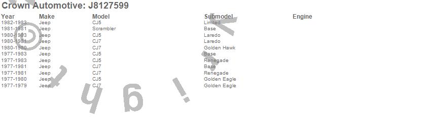 Crown Automotive is the premier manufacturer and distributor of quality replacement parts for Jeep® CJ™, Wrangler™, Cherokee™, Grand Cherokee™, Liberty™, and Commander™."From humble beginnings in 1963 in a small Boston storefront, Crown Automotive has consistently maintained its commitment to offering only quality parts and exceptional service. Today, with warehouses in Massachusetts, Georgia, Nevada, Spain, and the Czech Republic, totaling over 160,000 square feet, Crown Automotive continues to be the leader in quality replacement parts for Jeep® vehicles. With over 8,000 different parts in stock for Jeep® vehicles from 1942 on up, Crown has the largest stock of replacement parts for Jeep® vehicles, including factory-discontinued parts. In fact, many of the older Jeeps are still on (and off) the road thanks to Crown parts. The Crown line consists of axle, body, brake, clutch, cooling, driveline, electrical, engine, exhaust, fuel, steering, suspension, transmission and transfer case components. Crown Automotive also offers an exclusive line of component kits and accessory products. Because we know that Jeeps are driven harder than most other vehicles, we emphasize offering only quality parts. In fact, we test parts on Jeeps before distributing them to our dealers to insure that they meet our standards for quality. Crown also supports its entire line with a 12 month/12,000 mile warranty to insure our dealers and their customers of our commitment to offering quality parts. We know from experience that Jeep® owners would rather pay a little more for a good quality part that's backed by a strong guarantee. But we know that price is important as well. So, not only will you find Crown parts to be of exceptional quality, but you'll find them at a great price too.