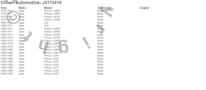 Crown Automotive is the premier manufacturer and distributor of quality replacement parts for Jeep® CJ™, Wrangler™, Cherokee™, Grand Cherokee™, Liberty™, and Commander™."From humble beginnings in 1963 in a small Boston storefront, Crown Automotive has consistently maintained its commitment to offering only quality parts and exceptional service. Today, with warehouses in Massachusetts, Georgia, Nevada, Spain, and the Czech Republic, totaling over 160,000 square feet, Crown Automotive continues to be the leader in quality replacement parts for Jeep® vehicles. With over 8,000 different parts in stock for Jeep® vehicles from 1942 on up, Crown has the largest stock of replacement parts for Jeep® vehicles, including factory-discontinued parts. In fact, many of the older Jeeps are still on (and off) the road thanks to Crown parts. The Crown line consists of axle, body, brake, clutch, cooling, driveline, electrical, engine, exhaust, fuel, steering, suspension, transmission and transfer case components. Crown Automotive also offers an exclusive line of component kits and accessory products. Because we know that Jeeps are driven harder than most other vehicles, we emphasize offering only quality parts. In fact, we test parts on Jeeps before distributing them to our dealers to insure that they meet our standards for quality. Crown also supports its entire line with a 12 month/12,000 mile warranty to insure our dealers and their customers of our commitment to offering quality parts. We know from experience that Jeep® owners would rather pay a little more for a good quality part that's backed by a strong guarantee. But we know that price is important as well. So, not only will you find Crown parts to be of exceptional quality, but you'll find them at a great price too.