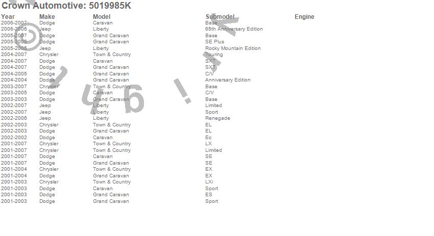 Caravan, Grand Caravan, Liberty, Town & Country, Chrysler, Dodge, Jeep, 2007, 2006, 2005, 2004, 2003, 2002, 2001 more…