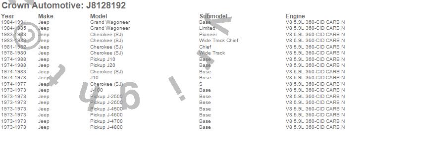 Cherokee (SJ), Grand Wagoneer, J-100, J-2500, J-2600, J-4500, J-4600, J-4700, J-4800, J10, J20, Wagoneer, Jeep, 1991, 1990, 1989, 1988, 1987, 1986, 1985 more…