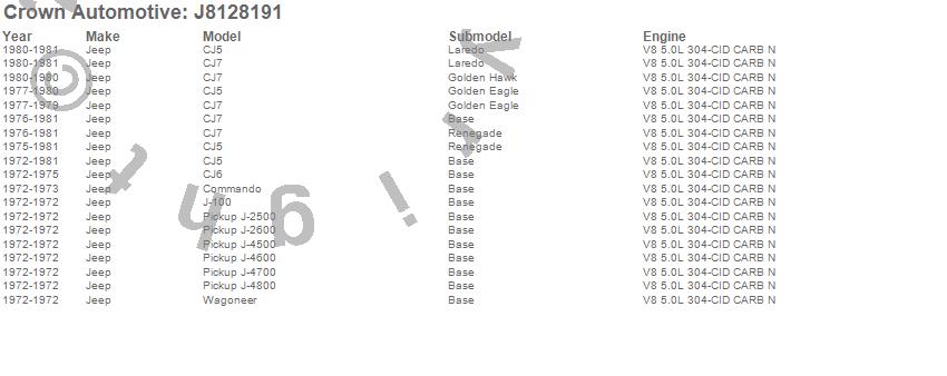 CJ5, CJ6, CJ7, Commando, DJ5, DJ5C, J-100, J-2500, J-2600, J-4500, J-4600, J-4700, J-4800, Jeepster, Wagoneer, Jeep, 1981, 1980, 1979, 1978 more…