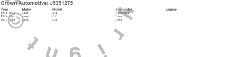 Crown Automotive is the premier manufacturer and distributor of quality replacement parts for Jeep® CJ™, Wrangler™, Cherokee™, Grand Cherokee™, Liberty™, and Commander™."From humble beginnings in 1963 in a small Boston storefront, Crown Automotive has consistently maintained its commitment to offering only quality parts and exceptional service. Today, with warehouses in Massachusetts, Georgia, Nevada, Spain, and the Czech Republic, totaling over 160,000 square feet, Crown Automotive continues to be the leader in quality replacement parts for Jeep® vehicles. With over 8,000 different parts in stock for Jeep® vehicles from 1942 on up, Crown has the largest stock of replacement parts for Jeep® vehicles, including factory-discontinued parts. In fact, many of the older Jeeps are still on (and off) the road thanks to Crown parts. The Crown line consists of axle, body, brake, clutch, cooling, driveline, electrical, engine, exhaust, fuel, steering, suspension, transmission and transfer case components. Crown Automotive also offers an exclusive line of component kits and accessory products. Because we know that Jeeps are driven harder than most other vehicles, we emphasize offering only quality parts. In fact, we test parts on Jeeps before distributing them to our dealers to insure that they meet our standards for quality. Crown also supports its entire line with a 12 month/12,000 mile warranty to insure our dealers and their customers of our commitment to offering quality parts. We know from experience that Jeep® owners would rather pay a little more for a good quality part that's backed by a strong guarantee. But we know that price is important as well. So, not only will you find Crown parts to be of exceptional quality, but you'll find them at a great price too.