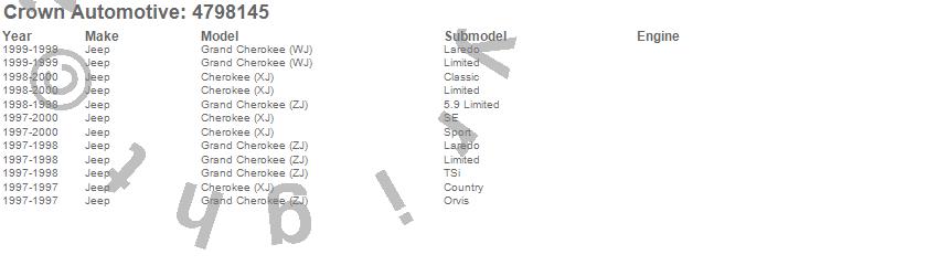 Crown Automotive is the premier manufacturer and distributor of quality replacement parts for Jeep® CJ™, Wrangler™, Cherokee™, Grand Cherokee™, Liberty™, and Commander™."From humble beginnings in 1963 in a small Boston storefront, Crown Automotive has consistently maintained its commitment to offering only quality parts and exceptional service. Today, with warehouses in Massachusetts, Georgia, Nevada, Spain, and the Czech Republic, totaling over 160,000 square feet, Crown Automotive continues to be the leader in quality replacement parts for Jeep® vehicles. With over 8,000 different parts in stock for Jeep® vehicles from 1942 on up, Crown has the largest stock of replacement parts for Jeep® vehicles, including factory-discontinued parts. In fact, many of the older Jeeps are still on (and off) the road thanks to Crown parts. The Crown line consists of axle, body, brake, clutch, cooling, driveline, electrical, engine, exhaust, fuel, steering, suspension, transmission and transfer case components. Crown Automotive also offers an exclusive line of component kits and accessory products. Because we know that Jeeps are driven harder than most other vehicles, we emphasize offering only quality parts. In fact, we test parts on Jeeps before distributing them to our dealers to insure that they meet our standards for quality. Crown also supports its entire line with a 12 month/12,000 mile warranty to insure our dealers and their customers of our commitment to offering quality parts. We know from experience that Jeep® owners would rather pay a little more for a good quality part that's backed by a strong guarantee. But we know that price is important as well. So, not only will you find Crown parts to be of exceptional quality, but you'll find them at a great price too.