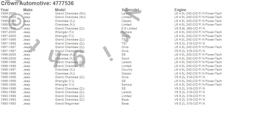 Cherokee (XJ), Grand Cherokee (WJ), Grand Cherokee (ZJ), Grand Wagoneer, Wrangler (TJ), Wrangler (YJ), Jeep, 2000, 1999, 1998, 1997, 1996, 1995, 1994, 1993 more…