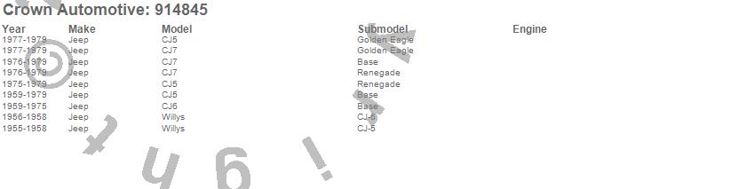 Crown Automotive is the premier manufacturer and distributor of quality replacement parts for Jeep® CJ™, Wrangler™, Cherokee™, Grand Cherokee™, Liberty™, and Commander™."From humble beginnings in 1963 in a small Boston storefront, Crown Automotive has consistently maintained its commitment to offering only quality parts and exceptional service. Today, with warehouses in Massachusetts, Georgia, Nevada, Spain, and the Czech Republic, totaling over 160,000 square feet, Crown Automotive continues to be the leader in quality replacement parts for Jeep® vehicles. With over 8,000 different parts in stock for Jeep® vehicles from 1942 on up, Crown has the largest stock of replacement parts for Jeep® vehicles, including factory-discontinued parts. In fact, many of the older Jeeps are still on (and off) the road thanks to Crown parts. The Crown line consists of axle, body, brake, clutch, cooling, driveline, electrical, engine, exhaust, fuel, steering, suspension, transmission and transfer case components. Crown Automotive also offers an exclusive line of component kits and accessory products. Because we know that Jeeps are driven harder than most other vehicles, we emphasize offering only quality parts. In fact, we test parts on Jeeps before distributing them to our dealers to insure that they meet our standards for quality. Crown also supports its entire line with a 12 month/12,000 mile warranty to insure our dealers and their customers of our commitment to offering quality parts. We know from experience that Jeep® owners would rather pay a little more for a good quality part that's backed by a strong guarantee. But we know that price is important as well. So, not only will you find Crown parts to be of exceptional quality, but you'll find them at a great price too.