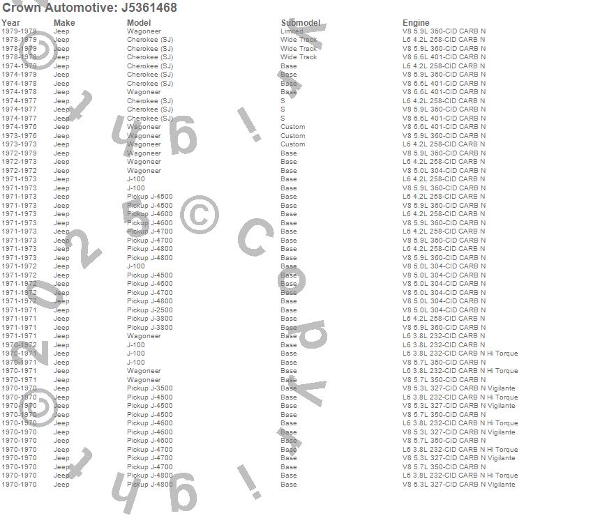 Cherokee (SJ), J-100, J-2500, J-3500, J-3800, J-4500, J-4600, J-4700, J-4800, Wagoneer, Jeep, 1979, 1978, 1977, 1976, 1975, 1974, 1973, 1972, 1971 more…