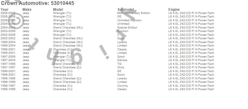 Cherokee (XJ), Grand Cherokee (WJ), Grand Cherokee (ZJ), Wrangler (LJ), Wrangler (TJ), Jeep, 2006, 2005, 2004, 2003, 2002, 2001, 2000, 1999, 1998, 1997, 1996 more…