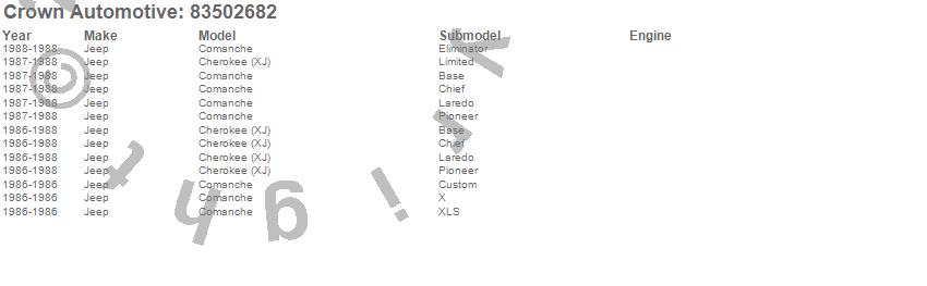 Crown Automotive is the premier manufacturer and distributor of quality replacement parts for Jeep® CJ™, Wrangler™, Cherokee™, Grand Cherokee™, Liberty™, and Commander™."From humble beginnings in 1963 in a small Boston storefront, Crown Automotive has consistently maintained its commitment to offering only quality parts and exceptional service. Today, with warehouses in Massachusetts, Georgia, Nevada, Spain, and the Czech Republic, totaling over 160,000 square feet, Crown Automotive continues to be the leader in quality replacement parts for Jeep® vehicles. With over 8,000 different parts in stock for Jeep® vehicles from 1942 on up, Crown has the largest stock of replacement parts for Jeep® vehicles, including factory-discontinued parts. In fact, many of the older Jeeps are still on (and off) the road thanks to Crown parts. The Crown line consists of axle, body, brake, clutch, cooling, driveline, electrical, engine, exhaust, fuel, steering, suspension, transmission and transfer case components. Crown Automotive also offers an exclusive line of component kits and accessory products. Because we know that Jeeps are driven harder than most other vehicles, we emphasize offering only quality parts. In fact, we test parts on Jeeps before distributing them to our dealers to insure that they meet our standards for quality. Crown also supports its entire line with a 12 month/12,000 mile warranty to insure our dealers and their customers of our commitment to offering quality parts. We know from experience that Jeep® owners would rather pay a little more for a good quality part that's backed by a strong guarantee. But we know that price is important as well. So, not only will you find Crown parts to be of exceptional quality, but you'll find them at a great price too.