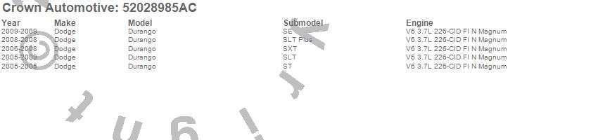 Crown Automotive Radiator Hose 52028985AC Features:
