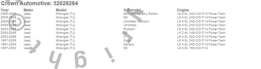 Crown Automotive is the premier manufacturer and distributor of quality replacement parts for Jeep® CJ™, Wrangler™, Cherokee™, Grand Cherokee™, Liberty™, and Commander™."From humble beginnings in 1963 in a small Boston storefront, Crown Automotive has consistently maintained its commitment to offering only quality parts and exceptional service. Today, with warehouses in Massachusetts, Georgia, Nevada, Spain, and the Czech Republic, totaling over 160,000 square feet, Crown Automotive continues to be the leader in quality replacement parts for Jeep® vehicles. With over 8,000 different parts in stock for Jeep® vehicles from 1942 on up, Crown has the largest stock of replacement parts for Jeep® vehicles, including factory-discontinued parts. In fact, many of the older Jeeps are still on (and off) the road thanks to Crown parts. The Crown line consists of axle, body, brake, clutch, cooling, driveline, electrical, engine, exhaust, fuel, steering, suspension, transmission and transfer case components. Crown Automotive also offers an exclusive line of component kits and accessory products. Because we know that Jeeps are driven harder than most other vehicles, we emphasize offering only quality parts. In fact, we test parts on Jeeps before distributing them to our dealers to insure that they meet our standards for quality. Crown also supports its entire line with a 12 month/12,000 mile warranty to insure our dealers and their customers of our commitment to offering quality parts. We know from experience that Jeep® owners would rather pay a little more for a good quality part that's backed by a strong guarantee. But we know that price is important as well. So, not only will you find Crown parts to be of exceptional quality, but you'll find them at a great price too.