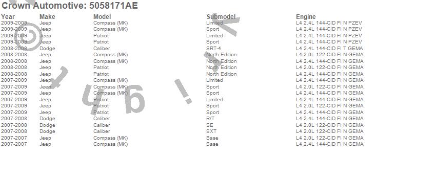 Crown Automotive Radiator Hose 5058171AE Features:
