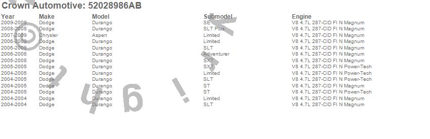 Aspen, Durango, Chrysler, Dodge, 2009, 2008, 2007, 2006, 2005, 2004 more…