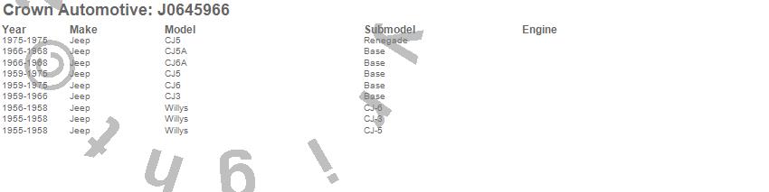 Crown Automotive is the premier manufacturer and distributor of quality replacement parts for Jeep® CJ™, Wrangler™, Cherokee™, Grand Cherokee™, Liberty™, and Commander™."From humble beginnings in 1963 in a small Boston storefront, Crown Automotive has consistently maintained its commitment to offering only quality parts and exceptional service. Today, with warehouses in Massachusetts, Georgia, Nevada, Spain, and the Czech Republic, totaling over 160,000 square feet, Crown Automotive continues to be the leader in quality replacement parts for Jeep® vehicles. With over 8,000 different parts in stock for Jeep® vehicles from 1942 on up, Crown has the largest stock of replacement parts for Jeep® vehicles, including factory-discontinued parts. In fact, many of the older Jeeps are still on (and off) the road thanks to Crown parts. The Crown line consists of axle, body, brake, clutch, cooling, driveline, electrical, engine, exhaust, fuel, steering, suspension, transmission and transfer case components. Crown Automotive also offers an exclusive line of component kits and accessory products. Because we know that Jeeps are driven harder than most other vehicles, we emphasize offering only quality parts. In fact, we test parts on Jeeps before distributing them to our dealers to insure that they meet our standards for quality. Crown also supports its entire line with a 12 month/12,000 mile warranty to insure our dealers and their customers of our commitment to offering quality parts. We know from experience that Jeep® owners would rather pay a little more for a good quality part that's backed by a strong guarantee. But we know that price is important as well. So, not only will you find Crown parts to be of exceptional quality, but you'll find them at a great price too.