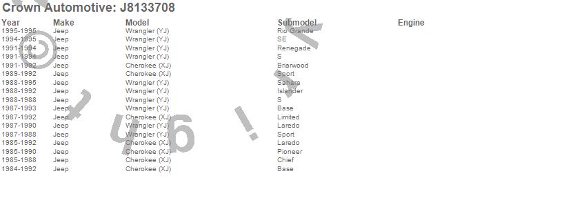 Crown Automotive is the premier manufacturer and distributor of quality replacement parts for Jeep® CJ™, Wrangler™, Cherokee™, Grand Cherokee™, Liberty™, and Commander™."From humble beginnings in 1963 in a small Boston storefront, Crown Automotive has consistently maintained its commitment to offering only quality parts and exceptional service. Today, with warehouses in Massachusetts, Georgia, Nevada, Spain, and the Czech Republic, totaling over 160,000 square feet, Crown Automotive continues to be the leader in quality replacement parts for Jeep® vehicles. With over 8,000 different parts in stock for Jeep® vehicles from 1942 on up, Crown has the largest stock of replacement parts for Jeep® vehicles, including factory-discontinued parts. In fact, many of the older Jeeps are still on (and off) the road thanks to Crown parts. The Crown line consists of axle, body, brake, clutch, cooling, driveline, electrical, engine, exhaust, fuel, steering, suspension, transmission and transfer case components. Crown Automotive also offers an exclusive line of component kits and accessory products. Because we know that Jeeps are driven harder than most other vehicles, we emphasize offering only quality parts. In fact, we test parts on Jeeps before distributing them to our dealers to insure that they meet our standards for quality. Crown also supports its entire line with a 12 month/12,000 mile warranty to insure our dealers and their customers of our commitment to offering quality parts. We know from experience that Jeep® owners would rather pay a little more for a good quality part that's backed by a strong guarantee. But we know that price is important as well. So, not only will you find Crown parts to be of exceptional quality, but you'll find them at a great price too.