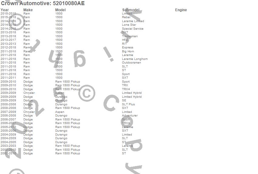 1500, Aspen, Durango, Ram 1500, Chrysler, Dodge, Ram, 2015, 2014, 2013, 2012, 2011, 2010, 2009, 2008, 2007, 2006, 2005, 2004, 2003 more…