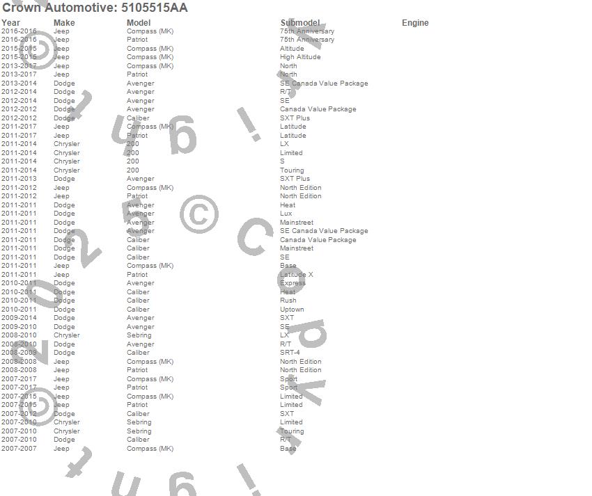 200, Avenger, Caliber, Compass, Patriot, Sebring, Chrysler, Dodge, Jeep, 2015, 2014, 2013, 2012, 2011, 2010, 2009, 2008, 2007 more…
