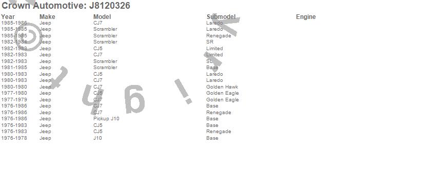 Crown Automotive is the premier manufacturer and distributor of quality replacement parts for Jeep® CJ™, Wrangler™, Cherokee™, Grand Cherokee™, Liberty™, and Commander™."From humble beginnings in 1963 in a small Boston storefront, Crown Automotive has consistently maintained its commitment to offering only quality parts and exceptional service. Today, with warehouses in Massachusetts, Georgia, Nevada, Spain, and the Czech Republic, totaling over 160,000 square feet, Crown Automotive continues to be the leader in quality replacement parts for Jeep® vehicles. With over 8,000 different parts in stock for Jeep® vehicles from 1942 on up, Crown has the largest stock of replacement parts for Jeep® vehicles, including factory-discontinued parts. In fact, many of the older Jeeps are still on (and off) the road thanks to Crown parts. The Crown line consists of axle, body, brake, clutch, cooling, driveline, electrical, engine, exhaust, fuel, steering, suspension, transmission and transfer case components. Crown Automotive also offers an exclusive line of component kits and accessory products. Because we know that Jeeps are driven harder than most other vehicles, we emphasize offering only quality parts. In fact, we test parts on Jeeps before distributing them to our dealers to insure that they meet our standards for quality. Crown also supports its entire line with a 12 month/12,000 mile warranty to insure our dealers and their customers of our commitment to offering quality parts. We know from experience that Jeep® owners would rather pay a little more for a good quality part that's backed by a strong guarantee. But we know that price is important as well. So, not only will you find Crown parts to be of exceptional quality, but you'll find them at a great price too.