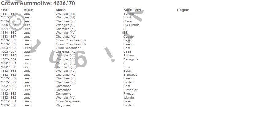 Crown Automotive is the premier manufacturer and distributor of quality replacement parts for Jeep® CJ™, Wrangler™, Cherokee™, Grand Cherokee™, Liberty™, and Commander™."From humble beginnings in 1963 in a small Boston storefront, Crown Automotive has consistently maintained its commitment to offering only quality parts and exceptional service. Today, with warehouses in Massachusetts, Georgia, Nevada, Spain, and the Czech Republic, totaling over 160,000 square feet, Crown Automotive continues to be the leader in quality replacement parts for Jeep® vehicles. With over 8,000 different parts in stock for Jeep® vehicles from 1942 on up, Crown has the largest stock of replacement parts for Jeep® vehicles, including factory-discontinued parts. In fact, many of the older Jeeps are still on (and off) the road thanks to Crown parts. The Crown line consists of axle, body, brake, clutch, cooling, driveline, electrical, engine, exhaust, fuel, steering, suspension, transmission and transfer case components. Crown Automotive also offers an exclusive line of component kits and accessory products. Because we know that Jeeps are driven harder than most other vehicles, we emphasize offering only quality parts. In fact, we test parts on Jeeps before distributing them to our dealers to insure that they meet our standards for quality. Crown also supports its entire line with a 12 month/12,000 mile warranty to insure our dealers and their customers of our commitment to offering quality parts. We know from experience that Jeep® owners would rather pay a little more for a good quality part that's backed by a strong guarantee. But we know that price is important as well. So, not only will you find Crown parts to be of exceptional quality, but you'll find them at a great price too.