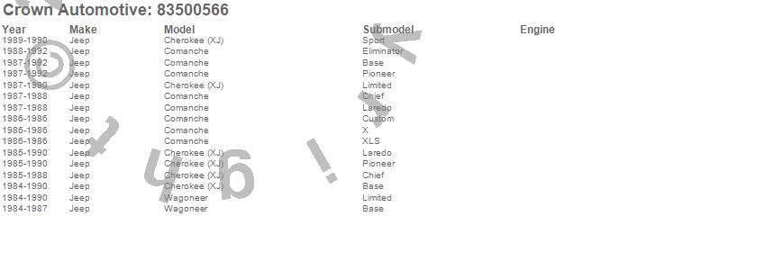 Cherokee (XJ), Comanche, Wagoneer, Jeep, 1992, 1991, 1990, 1989, 1988, 1987, 1986, 1985, 1984 more…