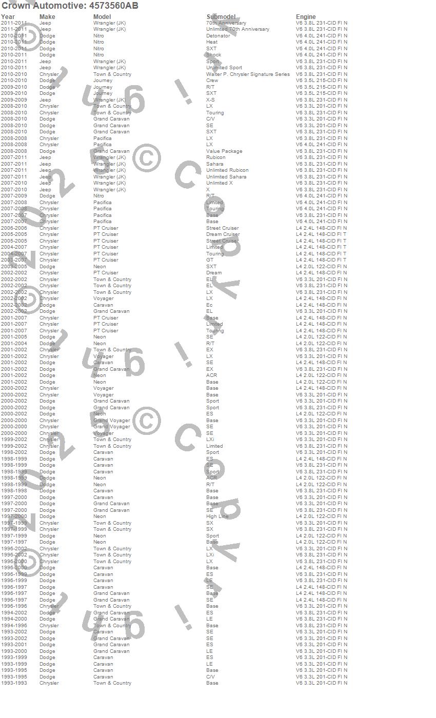 Caravan, Grand Caravan, Grand Voyager, Journey, Neon, Nitro, Pacifica, PT Cruiser, Town & Country, Voyager, Wrangler (JK), Chrysler, Dodge, Jeep, 2011, 2010, 2009, 2008, 2007, 2006 more…