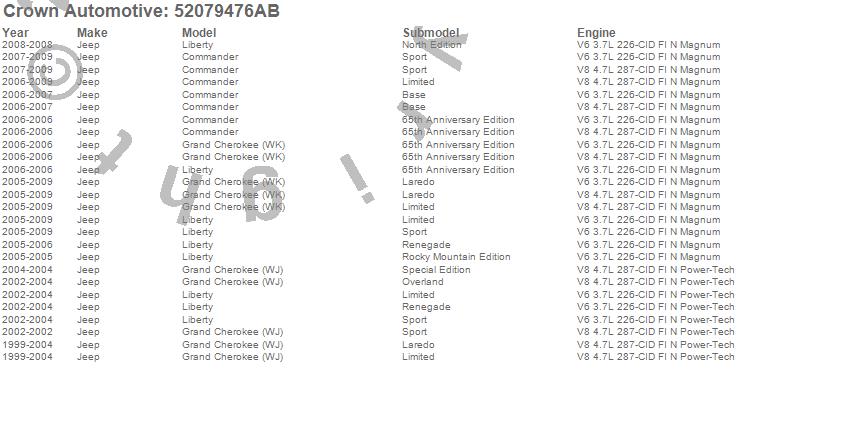 Commander, Grand Cherokee (WJ), Grand Cherokee (WK), Liberty, Jeep, 2009, 2008, 2007, 2006, 2005, 2004, 2003, 2002, 2001, 2000, 1999 more…
