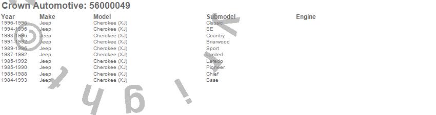 Cherokee (XJ), Jeep, 1996, 1995, 1994, 1993, 1992, 1991, 1990, 1989, 1988, 1987, 1986, 1985, 1984 more…