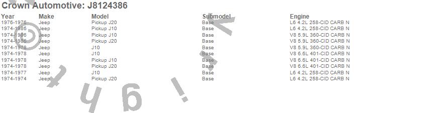 J10, J20, Jeep, 1986, 1985, 1984, 1983, 1982, 1981, 1980, 1979, 1978, 1977, 1976, 1975, 1974 more…