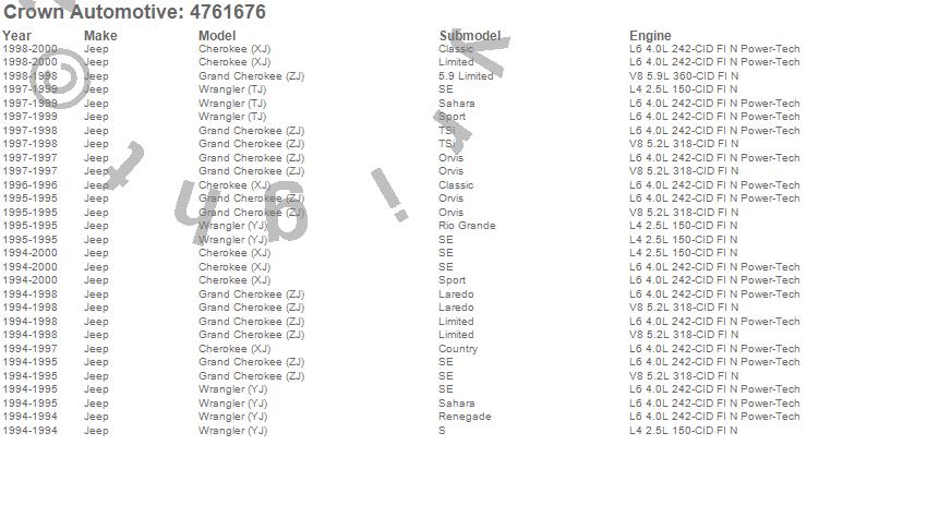 Cherokee (XJ), Grand Cherokee (ZJ), Wrangler (TJ), Wrangler (YJ), Jeep, 2000, 1999, 1998, 1997, 1996, 1995, 1994 more…