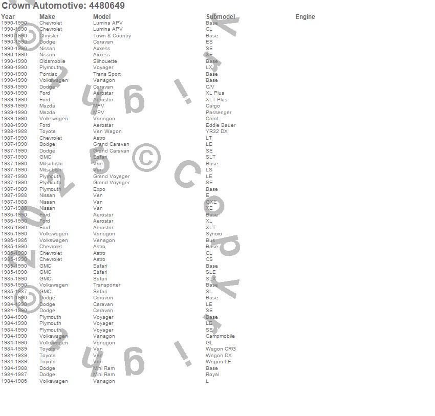 Aerostar, Astro, Axxess, Caravan, Expo, Grand Caravan, Grand Voyager, Lumina APV, Mini Ram, MPV, Royal Mini Ram, Safari, Silhouette, Town & Country, Trans Sport, TranSporter, Van, Van Wagon, Vanagon, Voyager more…
