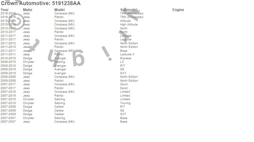 Avenger, Caliber, Compass, Patriot, Sebring, Chrysler, Dodge, Jeep, 2015, 2014, 2013, 2012, 2011, 2010, 2009, 2008, 2007 more…