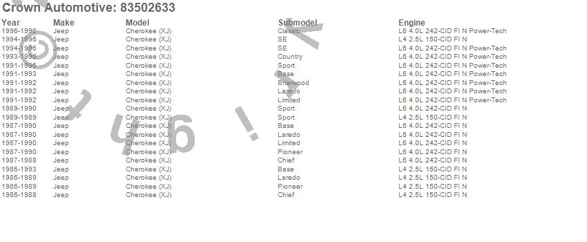 Crown Automotive is the premier manufacturer and distributor of quality replacement parts for Jeep® CJ™, Wrangler™, Cherokee™, Grand Cherokee™, Liberty™, and Commander™."From humble beginnings in 1963 in a small Boston storefront, Crown Automotive has consistently maintained its commitment to offering only quality parts and exceptional service. Today, with warehouses in Massachusetts, Georgia, Nevada, Spain, and the Czech Republic, totaling over 160,000 square feet, Crown Automotive continues to be the leader in quality replacement parts for Jeep® vehicles. With over 8,000 different parts in stock for Jeep® vehicles from 1942 on up, Crown has the largest stock of replacement parts for Jeep® vehicles, including factory-discontinued parts. In fact, many of the older Jeeps are still on (and off) the road thanks to Crown parts. The Crown line consists of axle, body, brake, clutch, cooling, driveline, electrical, engine, exhaust, fuel, steering, suspension, transmission and transfer case components. Crown Automotive also offers an exclusive line of component kits and accessory products. Because we know that Jeeps are driven harder than most other vehicles, we emphasize offering only quality parts. In fact, we test parts on Jeeps before distributing them to our dealers to insure that they meet our standards for quality. Crown also supports its entire line with a 12 month/12,000 mile warranty to insure our dealers and their customers of our commitment to offering quality parts. We know from experience that Jeep® owners would rather pay a little more for a good quality part that's backed by a strong guarantee. But we know that price is important as well. So, not only will you find Crown parts to be of exceptional quality, but you'll find them at a great price too.