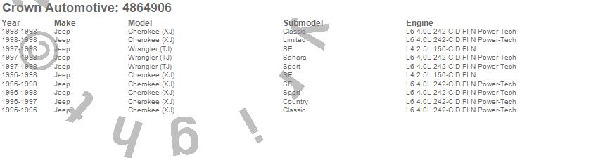 Crown Automotive is the premier manufacturer and distributor of quality replacement parts for Jeep® CJ™, Wrangler™, Cherokee™, Grand Cherokee™, Liberty™, and Commander™."From humble beginnings in 1963 in a small Boston storefront, Crown Automotive has consistently maintained its commitment to offering only quality parts and exceptional service. Today, with warehouses in Massachusetts, Georgia, Nevada, Spain, and the Czech Republic, totaling over 160,000 square feet, Crown Automotive continues to be the leader in quality replacement parts for Jeep® vehicles. With over 8,000 different parts in stock for Jeep® vehicles from 1942 on up, Crown has the largest stock of replacement parts for Jeep® vehicles, including factory-discontinued parts. In fact, many of the older Jeeps are still on (and off) the road thanks to Crown parts. The Crown line consists of axle, body, brake, clutch, cooling, driveline, electrical, engine, exhaust, fuel, steering, suspension, transmission and transfer case components. Crown Automotive also offers an exclusive line of component kits and accessory products. Because we know that Jeeps are driven harder than most other vehicles, we emphasize offering only quality parts. In fact, we test parts on Jeeps before distributing them to our dealers to insure that they meet our standards for quality. Crown also supports its entire line with a 12 month/12,000 mile warranty to insure our dealers and their customers of our commitment to offering quality parts. We know from experience that Jeep® owners would rather pay a little more for a good quality part that's backed by a strong guarantee. But we know that price is important as well. So, not only will you find Crown parts to be of exceptional quality, but you'll find them at a great price too.