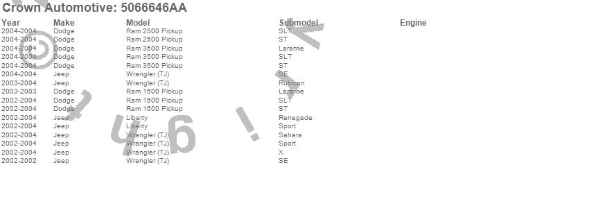 Liberty, Ram 1500, Ram 2500, Ram 3500, Wrangler (TJ), Dodge, Jeep, 2004, 2003, 2002 more…