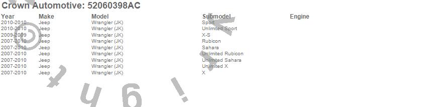 Crown Automotive is the premier manufacturer and distributor of quality replacement parts for Jeep® CJ™, Wrangler™, Cherokee™, Grand Cherokee™, Liberty™, and Commander™."From humble beginnings in 1963 in a small Boston storefront, Crown Automotive has consistently maintained its commitment to offering only quality parts and exceptional service. Today, with warehouses in Massachusetts, Georgia, Nevada, Spain, and the Czech Republic, totaling over 160,000 square feet, Crown Automotive continues to be the leader in quality replacement parts for Jeep® vehicles. With over 8,000 different parts in stock for Jeep® vehicles from 1942 on up, Crown has the largest stock of replacement parts for Jeep® vehicles, including factory-discontinued parts. In fact, many of the older Jeeps are still on (and off) the road thanks to Crown parts. The Crown line consists of axle, body, brake, clutch, cooling, driveline, electrical, engine, exhaust, fuel, steering, suspension, transmission and transfer case components. Crown Automotive also offers an exclusive line of component kits and accessory products. Because we know that Jeeps are driven harder than most other vehicles, we emphasize offering only quality parts. In fact, we test parts on Jeeps before distributing them to our dealers to insure that they meet our standards for quality. Crown also supports its entire line with a 12 month/12,000 mile warranty to insure our dealers and their customers of our commitment to offering quality parts. We know from experience that Jeep® owners would rather pay a little more for a good quality part that's backed by a strong guarantee. But we know that price is important as well. So, not only will you find Crown parts to be of exceptional quality, but you'll find them at a great price too.