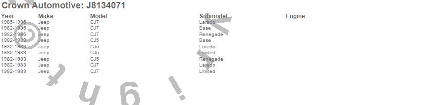 Crown Automotive is the premier manufacturer and distributor of quality replacement parts for Jeep® CJ™, Wrangler™, Cherokee™, Grand Cherokee™, Liberty™, and Commander™."From humble beginnings in 1963 in a small Boston storefront, Crown Automotive has consistently maintained its commitment to offering only quality parts and exceptional service. Today, with warehouses in Massachusetts, Georgia, Nevada, Spain, and the Czech Republic, totaling over 160,000 square feet, Crown Automotive continues to be the leader in quality replacement parts for Jeep® vehicles. With over 8,000 different parts in stock for Jeep® vehicles from 1942 on up, Crown has the largest stock of replacement parts for Jeep® vehicles, including factory-discontinued parts. In fact, many of the older Jeeps are still on (and off) the road thanks to Crown parts. The Crown line consists of axle, body, brake, clutch, cooling, driveline, electrical, engine, exhaust, fuel, steering, suspension, transmission and transfer case components. Crown Automotive also offers an exclusive line of component kits and accessory products. Because we know that Jeeps are driven harder than most other vehicles, we emphasize offering only quality parts. In fact, we test parts on Jeeps before distributing them to our dealers to insure that they meet our standards for quality. Crown also supports its entire line with a 12 month/12,000 mile warranty to insure our dealers and their customers of our commitment to offering quality parts. We know from experience that Jeep® owners would rather pay a little more for a good quality part that's backed by a strong guarantee. But we know that price is important as well. So, not only will you find Crown parts to be of exceptional quality, but you'll find them at a great price too.