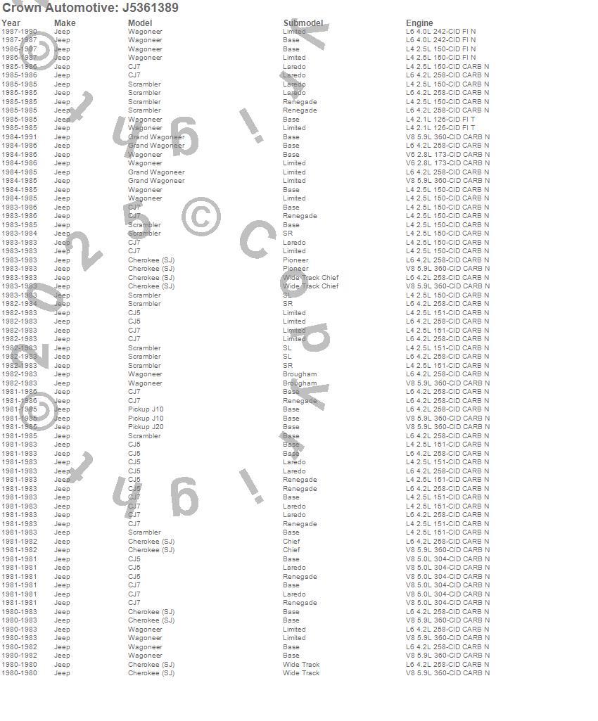 Cherokee (SJ), CJ5, CJ7, Grand Wagoneer, J10, J20, Scrambler, Wagoneer, Jeep, 1991, 1990, 1989, 1988, 1987, 1986, 1985, 1984, 1983, 1982, 1981 more…