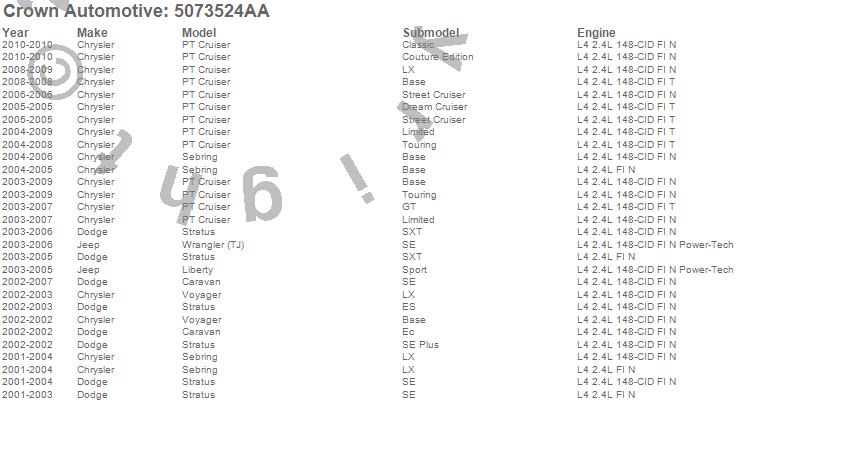 Caravan, Liberty, PT Cruiser, Sebring, Stratus, Voyager, Wrangler (TJ), Chrysler, Dodge, Jeep, 2010, 2009, 2008, 2007, 2006, 2005, 2004, 2003, 2002, 2001 more…