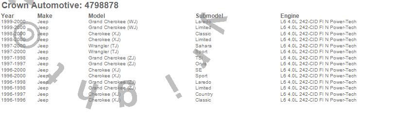 Crown Automotive is the premier manufacturer and distributor of quality replacement parts for Jeep® CJ™, Wrangler™, Cherokee™, Grand Cherokee™, Liberty™, and Commander™."From humble beginnings in 1963 in a small Boston storefront, Crown Automotive has consistently maintained its commitment to offering only quality parts and exceptional service. Today, with warehouses in Massachusetts, Georgia, Nevada, Spain, and the Czech Republic, totaling over 160,000 square feet, Crown Automotive continues to be the leader in quality replacement parts for Jeep® vehicles. With over 8,000 different parts in stock for Jeep® vehicles from 1942 on up, Crown has the largest stock of replacement parts for Jeep® vehicles, including factory-discontinued parts. In fact, many of the older Jeeps are still on (and off) the road thanks to Crown parts. The Crown line consists of axle, body, brake, clutch, cooling, driveline, electrical, engine, exhaust, fuel, steering, suspension, transmission and transfer case components. Crown Automotive also offers an exclusive line of component kits and accessory products. Because we know that Jeeps are driven harder than most other vehicles, we emphasize offering only quality parts. In fact, we test parts on Jeeps before distributing them to our dealers to insure that they meet our standards for quality. Crown also supports its entire line with a 12 month/12,000 mile warranty to insure our dealers and their customers of our commitment to offering quality parts. We know from experience that Jeep® owners would rather pay a little more for a good quality part that's backed by a strong guarantee. But we know that price is important as well. So, not only will you find Crown parts to be of exceptional quality, but you'll find them at a great price too.