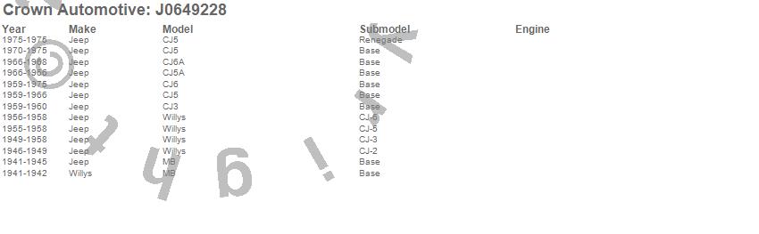 Crown Automotive is the premier manufacturer and distributor of quality replacement parts for Jeep® CJ™, Wrangler™, Cherokee™, Grand Cherokee™, Liberty™, and Commander™."From humble beginnings in 1963 in a small Boston storefront, Crown Automotive has consistently maintained its commitment to offering only quality parts and exceptional service. Today, with warehouses in Massachusetts, Georgia, Nevada, Spain, and the Czech Republic, totaling over 160,000 square feet, Crown Automotive continues to be the leader in quality replacement parts for Jeep® vehicles. With over 8,000 different parts in stock for Jeep® vehicles from 1942 on up, Crown has the largest stock of replacement parts for Jeep® vehicles, including factory-discontinued parts. In fact, many of the older Jeeps are still on (and off) the road thanks to Crown parts. The Crown line consists of axle, body, brake, clutch, cooling, driveline, electrical, engine, exhaust, fuel, steering, suspension, transmission and transfer case components. Crown Automotive also offers an exclusive line of component kits and accessory products. Because we know that Jeeps are driven harder than most other vehicles, we emphasize offering only quality parts. In fact, we test parts on Jeeps before distributing them to our dealers to insure that they meet our standards for quality. Crown also supports its entire line with a 12 month/12,000 mile warranty to insure our dealers and their customers of our commitment to offering quality parts. We know from experience that Jeep® owners would rather pay a little more for a good quality part that's backed by a strong guarantee. But we know that price is important as well. So, not only will you find Crown parts to be of exceptional quality, but you'll find them at a great price too.