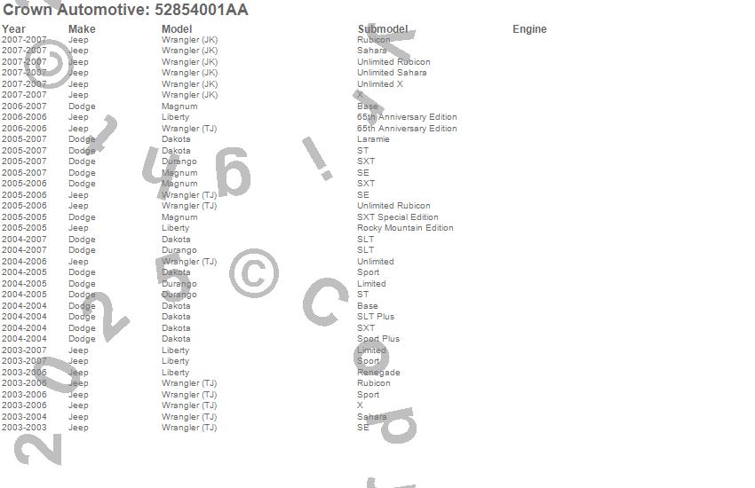 Dakota, Durango, Liberty, Magnum, Wrangler (JK), Wrangler (LJ), Wrangler (TJ), Dodge, Jeep, 2007, 2006, 2005, 2004, 2003 more…