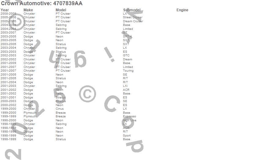 Breeze, Cirrus, Neon, PT Cruiser, Sebring, Stratus, Chrysler, Dodge, Plymouth, 2009, 2008, 2007, 2006, 2005, 2004, 2003, 2002, 2001, 2000, 1999 more…