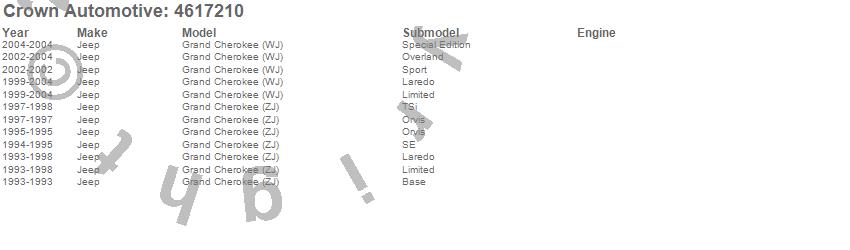 Crown Automotive is the premier manufacturer and distributor of quality replacement parts for Jeep® CJ™, Wrangler™, Cherokee™, Grand Cherokee™, Liberty™, and Commander™."From humble beginnings in 1963 in a small Boston storefront, Crown Automotive has consistently maintained its commitment to offering only quality parts and exceptional service. Today, with warehouses in Massachusetts, Georgia, Nevada, Spain, and the Czech Republic, totaling over 160,000 square feet, Crown Automotive continues to be the leader in quality replacement parts for Jeep® vehicles. With over 8,000 different parts in stock for Jeep® vehicles from 1942 on up, Crown has the largest stock of replacement parts for Jeep® vehicles, including factory-discontinued parts. In fact, many of the older Jeeps are still on (and off) the road thanks to Crown parts. The Crown line consists of axle, body, brake, clutch, cooling, driveline, electrical, engine, exhaust, fuel, steering, suspension, transmission and transfer case components. Crown Automotive also offers an exclusive line of component kits and accessory products. Because we know that Jeeps are driven harder than most other vehicles, we emphasize offering only quality parts. In fact, we test parts on Jeeps before distributing them to our dealers to insure that they meet our standards for quality. Crown also supports its entire line with a 12 month/12,000 mile warranty to insure our dealers and their customers of our commitment to offering quality parts. We know from experience that Jeep® owners would rather pay a little more for a good quality part that's backed by a strong guarantee. But we know that price is important as well. So, not only will you find Crown parts to be of exceptional quality, but you'll find them at a great price too.